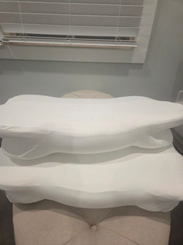 "Best neck contour pillow I’ve bought. Soft, cooling, and supportive for neck and shoulders. I’m a petite side sleeper and love the low side. Comfortable on my back too."
